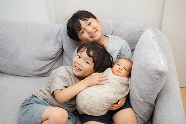 3人目にして初めてのニューボーンフォトでしたが、撮影では小物やお洋服など色々と提案してくださり、色々なパターンの写真を撮って頂けてとても嬉しく思いました。また、兄弟3人での写真(兄2人がやんちゃでお手数お掛けしました…)、家族での写真も素敵に撮って頂けて、とても良い思い出になりました。