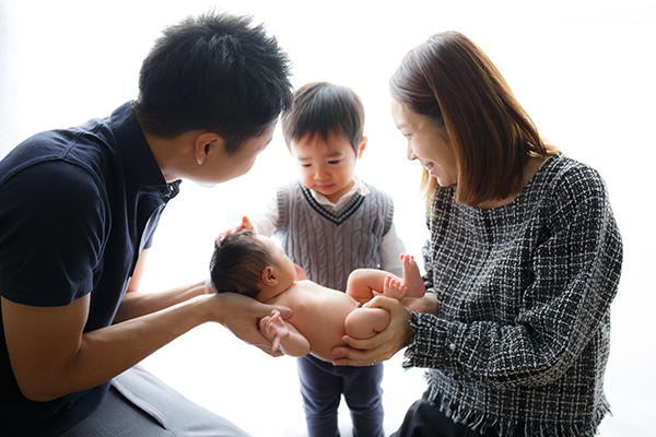 長女も楽しそうに撮影出来たのが印象的で、4人家族での初めての写真なので、とても楽しく撮影出来て思い出に残りました。念願のニューボーンフォト、お願いして良かったです!